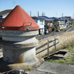 全高1m弱のトンガリ帽子の正体は、多摩川の伏流水を汲み上げる施設の空気抜き。ということは、近くに浄水場があるわけだ。Googleマップを頼りに、土手を降りて住宅地へ入ってくと……